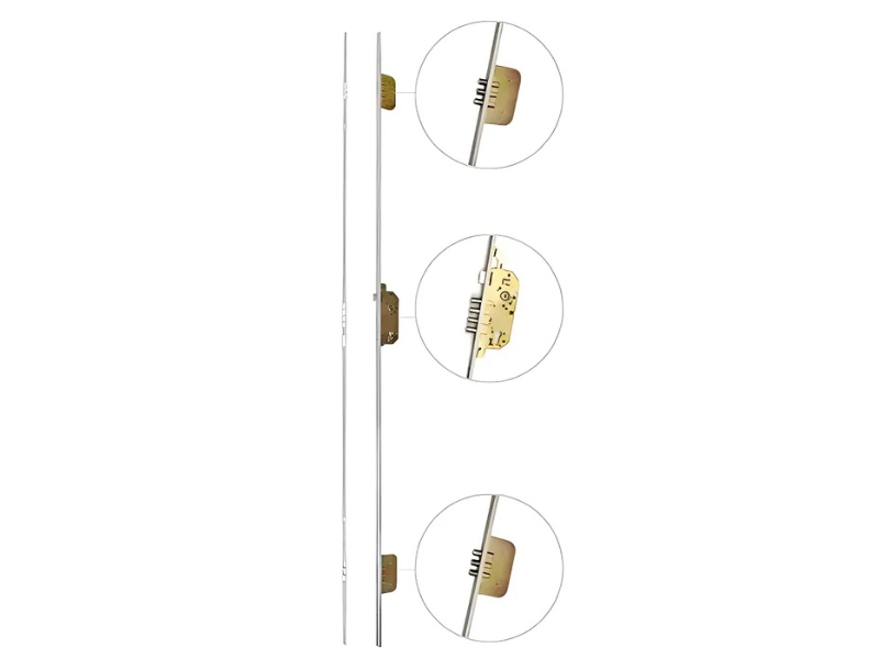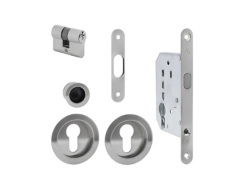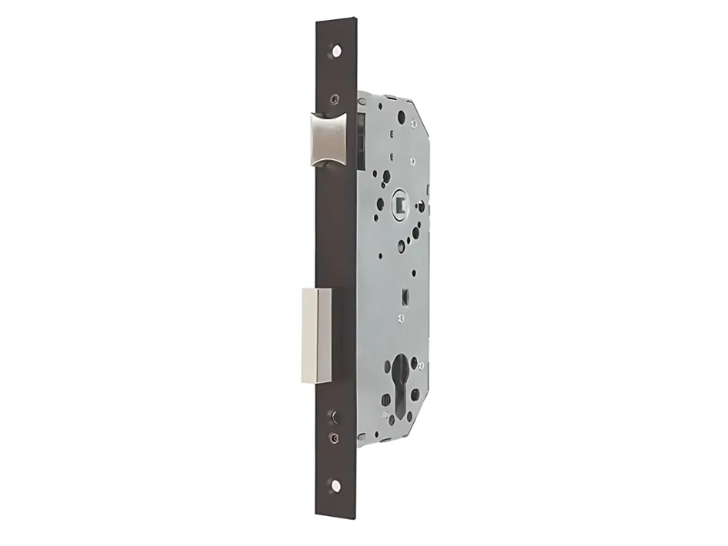 Cilindro con botón interior, ideal para puertas que requieren un nivel básico de seguridad. Su acabado y dimensiones lo hacen adecuado para diversas aplicaciones.