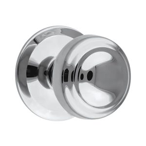 Tirador tipo pomo de diseño contemporáneo con acabado cromado. Ideal para muebles de líneas modernas, brinda un aspecto limpio y brillante.
