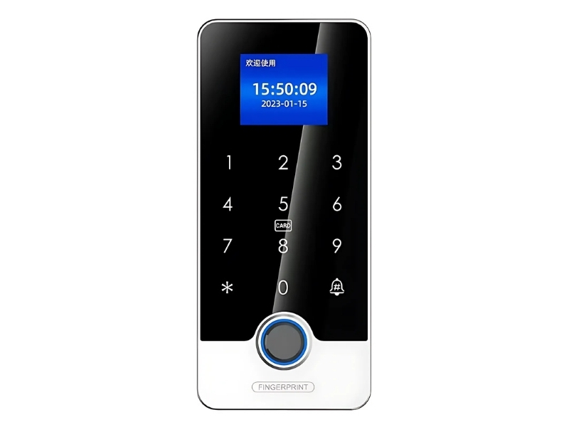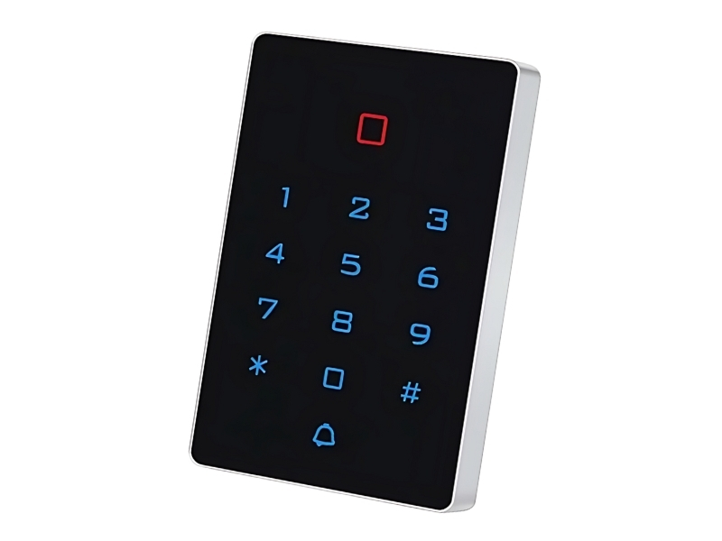Teclado exterior. Material: Acero inoxidable. Acabado: Cromado. Voltaje: 12V DC. Resistente a impactos (antivandálico). Configuración numérica para apertura por PIN. Compatible con sistemas de control de acceso autónomos o integrados. Grado de protección IP65, resistente al agua y al polvo.