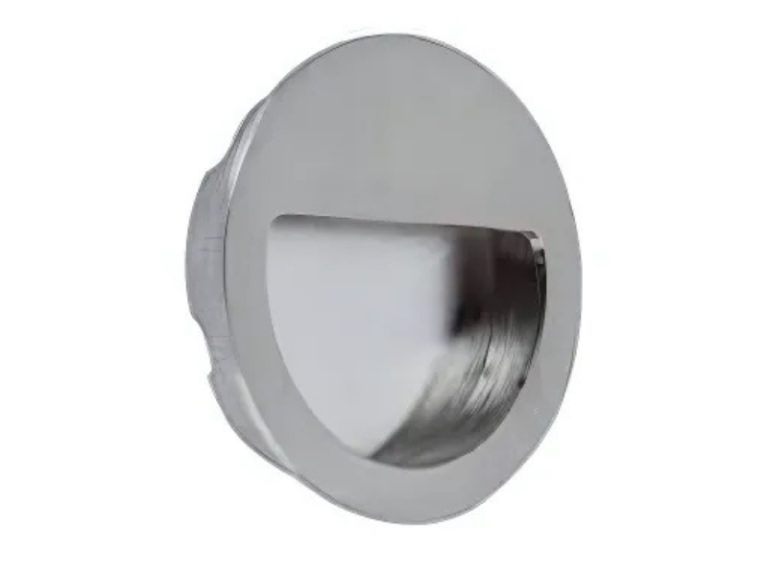 Tirador empotrado de diseño minimalista, acabado niquelado, ideal para puertas corredizas o abatibles donde se busca una estética discreta.