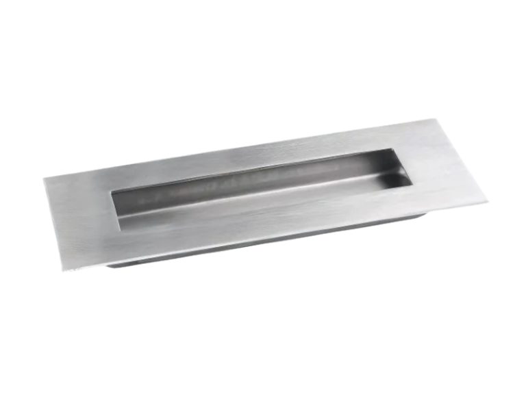 Tirador empotrado de diseño minimalista, acabado niquelado, ideal para puertas corredizas o abatibles donde se busca una estética discreta.